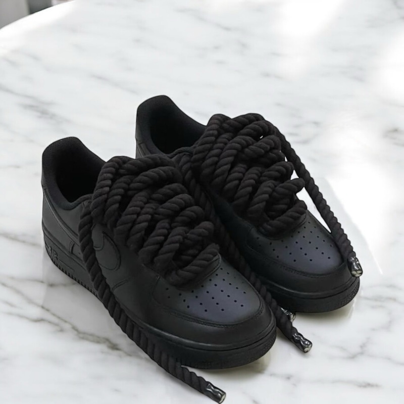 Matte AF1 Rope Custom – a clean matte-finished Air Force 1 with bold rope laces for a fresh, stylish look. Stand out with this unique custom design!